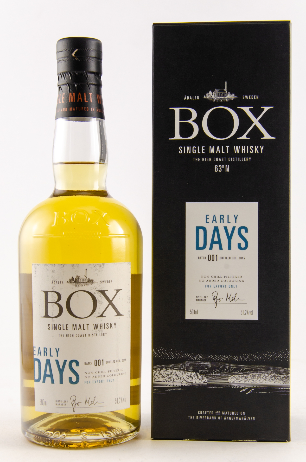 Auf 63° Nord liegt der Ort, an dem die Box Distillery ihre Heimat hat. Genauer gesagt im abgelegenen Norden von Schweden. In dieser zerklüfteten Landschaft, an den Ufern des mächtigen Flusses Ångermanälven, liegt die Box Distillery. Die Brennerei wird vom kristallklaren, kühlen Wasser des Flusses gespeist und erfährt täglich und jährlich große Temperaturschwankungen – Temperaturschwankungen, die dafür sorgen, dass der Whisky während seiner Reifung einen einzigartigen Geschmacksprozess durchläuft.