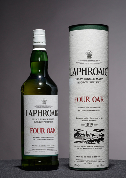 Dieser Laphroaig wird in vier verschiedenen Fässern gereift. Vorab in Ex-Bourbon-Fässern, anschließend in Quarter Casks, in frischen amerikanischen Eiche-Fässern und europäischen Eichefässen.