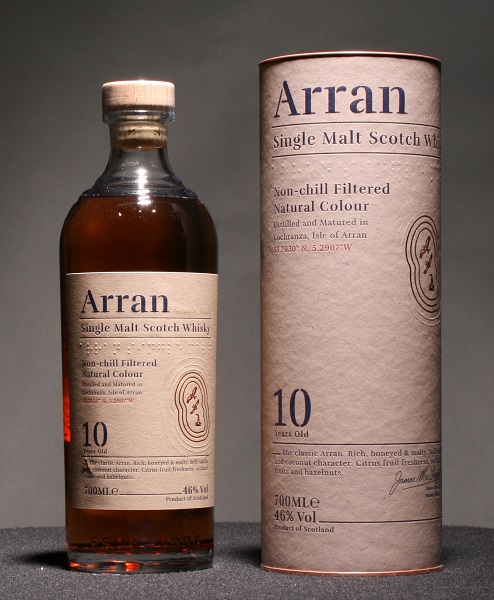 Arran 10 Jahre ist so zu sagen ein Alltagswhisky. Der Malt reifte in Bourbon- und Sherryfässern unterschiedlichen Alters.