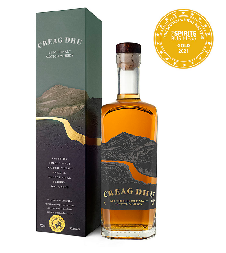 Creag Dhu ist ein außergewöhnlicher nicht getorfter Single Malt Whisky aus Speyside, der eng verbunden ist mit der Natur, den Bergen und der Erhaltung der Torfmoore – den größten natürlichen Kohlenstoffspeichern. Creag Dhu ist benannt nach einem ikonischen Berg im Herzen der schottischen Highlands; dort befindet sich auch der Ursprung des Flusses Spey.