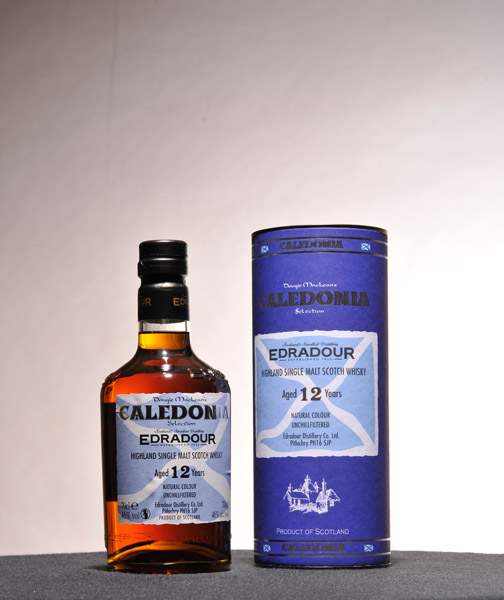 Der Edradour 12 Jahre Caledonia ist eine limitierte Ausgabe, die von Dougie MacLean aus einem 1997 Oloroso Sherry Fass gewählt wurde. Der Name Caledonia nach einem gleichnamigem Song von Dougie MacLean.