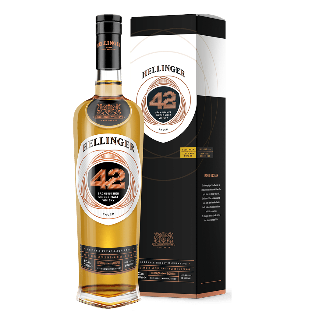 Aktuell wird der Whisky noch in Schottland gekauft und in Sachsen gelagert. Welche Brennerei den Whisky produziert wird dabei leider nicht verraten. Wir wissen nur, dass der gute Tropfen aus der Speyside kommt. Das Räuchern über Torf und die Reifung in amerikanischen Bourbonfässern verleiht Hellinger 42 - Rauch seine dunkelgoldene Farbe und seinen vollen rauchigen Geschmack.