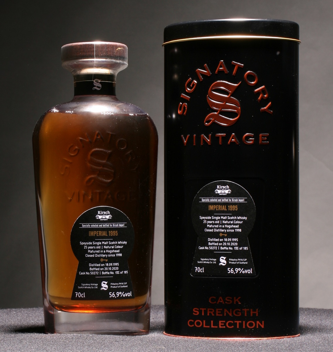 185 Dekanter hat der Single Malt aus der Imperial Distillery ergeben, deren Tore sich schon 1998 endgültig geschlossen haben. Die Exklusivabfüllung für Kirsch Import öffnet die Tore der Speyside-Brennerei wieder. 25 Jahre lang reifte der Speyside-Whisky in einem Hogshead und lockt mit tropischer Frucht, weißer Schokolade und Pfefferprickeln.