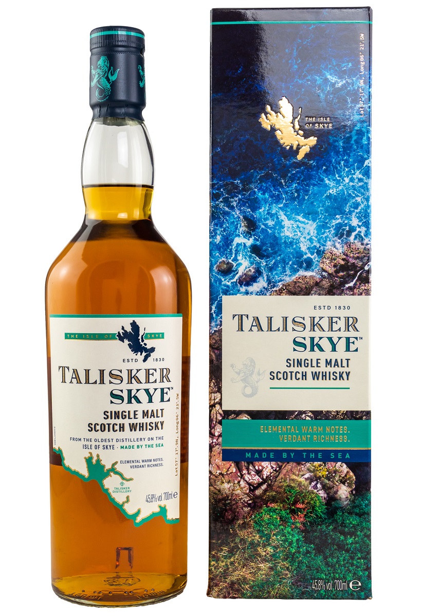 Die neue Abfüllung von Talisker wurde teilweise in neuen ausgebrannten Eichenfässern gereift. Das Aroma ist dadurch sehr würzig. Der Talisker Skye soll den bekannten 10-Jährigen Single Malt in Zukunft ersetzen.